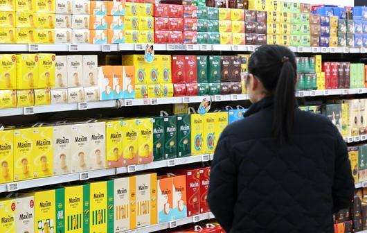 19일 오후 서울 시내의 한 대형마트에서 고객이 커피를 살펴보고 있다. /사진=뉴시스 |