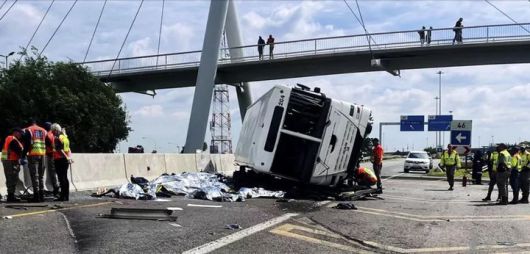 [서울=뉴시스]남아프리카공화국 요하네스버그 남쪽 반더빌파크에서 어린 학생들을 등교시키던 스쿨버스가 덤프 트럭과 충돌, 어린 학생 최소 11명이 숨지고 5명이 중상을 입고 인근 병원에서 치료받고 있다고 현지 언론이 보도했다. 사진은 12명이 사망한 지난해 3월 발생한 또다른 버스 사고 모습. <사진 출처 : 아프리카뉴스닷컴> 2026.01.19. |