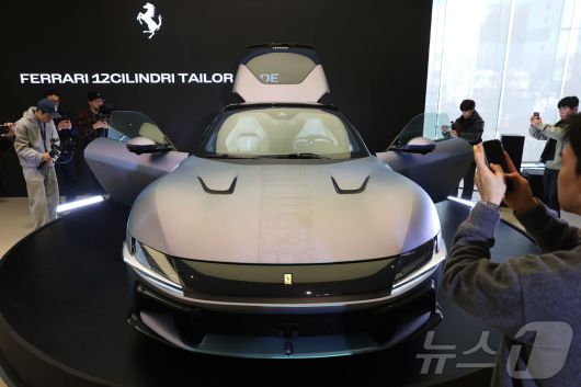 (서울=뉴스1) 이광호 기자 = 페라리가 19일 오후 서울 서초구 반포 전시장에서 한국 시장을 위해 특별히 제작된 세상에 단 하나뿐인 페라리 12 칠린드리 테일러메이드를 공개하고 있다.