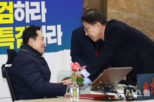 [서울=뉴시스]김혜경 기자 = 여권의 통일교 유착과 공천 헌금 의혹에 관한 쌍특검법 수용을 촉구하면서 닷새째 단식 농성을 벌이고 있는 장동혁 국민의힘 당대표가 연일 ‘장미’ 한송이에 자신을 빗대며 결연한 뜻을 드러냈다.