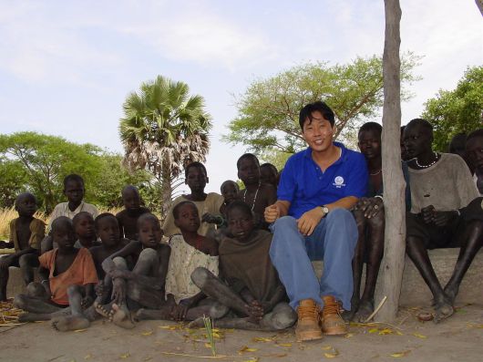 고 이태석 신부가 생전에 남수단 톤즈에서 봉사활동을 하던 당시 현지 학생들과 즐거운 한때를 보내던 모습. 〈수단어린이장학회 제공〉 |