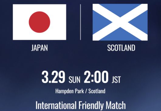 일본축구협회는 19일(한국시간) 공식 홈페이지를 통해 오는 일본 축구 대표팀이 3월 29일 오전 2시 스코틀랜드 수도 글래스고에 있는 햄든 파크에서 스코틀랜드 대표팀과 평가전을 치른다고 발표했다 .