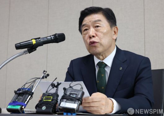[서울=뉴스핌] 김학선 기자 = 김형석 신임 독립기념관장이 12일 서울 용산구 국가보훈부 서울지방보훈청에서 현안 관련 기자회견을 하고 있다. 2024.08.12 yooksa@newspim.com |
