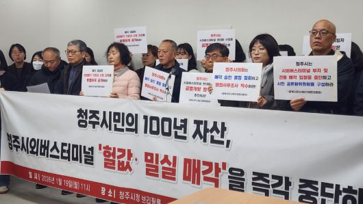 그러면서 "시외버스터미널의 현대화는 민간 매각이 아니라 청주도시공사가 주도하는 공영개발 방식으로 추진돼야 한다"라며 "시는 즉각 시외버스터미널 부지 및 건물 매각 입찰을 중단하고 시민 공론화위원회를 구성하라"라고 요구했다.