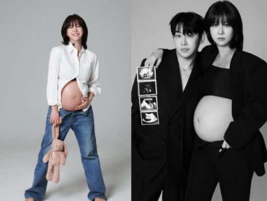 공개된 사진 속 은가은, 박현호는 출산을 한 달 앞둔 만삭을 기념하기 위해 촬영 중인 모습이다. 이들 부부는 다양한 콘셉트로 촬영했으며 볼록하게 나온 D라인이 눈길을 끈다.