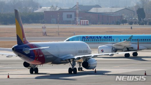 [서울=뉴시스]배훈식 기자 = 대한항공과 아시아나항공 통합 분수령인 한진칼의 제3자 배정 유상증자와 관련 가처분 신청 결과 발표가 예정된 1일 오후 서울 강서구 김포국제공항 국내선 청사 전망대에서 바라본 계류장에 각 항공사의 비행기가 주기돼 있다. 2020.12.01. dahora83@newsis.com |