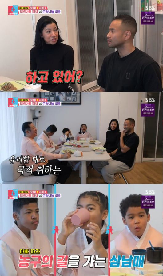 미나는 "남편은 '애들은 좀 강하게 키워야 한다'라 한다"라 했고 허재는 "너는 어디서 이상한 이야기만 하고 다니냐"라고 어이없어 했다.