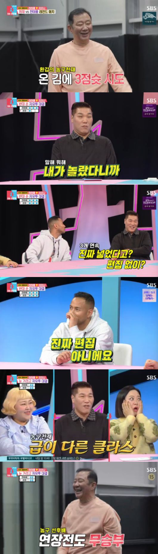 또 이날 전태풍과 허재는 농구 대결을 펼쳤다. 허재는 은퇴 23년차에 3점 슛에 도전했고, 연습 없이 한번에 성공해 모두를 놀라게 했다. 서장훈은 "공이 안 날아갈텐데"라고 했고, 전태풍도 "감독님 나이에 3점슛을 쏘는거 진짜 힘들다"고 인정했다.
