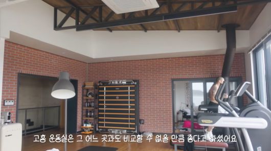 그러면서 "여기는 2층 운동실인데 매일 운동을 하시는 아버님을 위해 어머님께서 특별히 신경 써서 만든 공간이에요. 아버님은 언제 어딜 가시나 운동을 하시는데 고흥 운동실은 그 어느곳과도 비교할 수 없을 만큼 좋다고 하셨어요"라는 말로 시어머니가 정성을 들여 만든 공간이라고 설명했다.