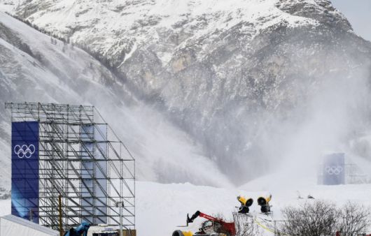 2026 밀라노-코르티나 동계올림픽 스키 종목이 열리는 경기장에 엄청난 양의 인공눈이 뿌려지고 있다. 사진=AFPBBNews |