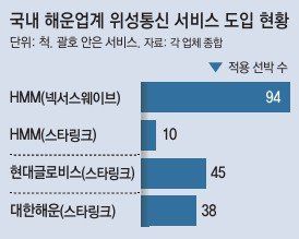 이 같은 첨단 위성통신 서비스 도입은 국내뿐 아니라 글로벌 업계의 흐름이다. 세계 7위 해운사인 대만의 에버그린도 최근 200여 척의 보유 선박 전체에 넥서스웨이브를 도입한다고 발표했다. 세계 5위 해운사인 독일 하파크로이트는 보유 선박 200여 척에 넥서스웨이브와 스타링크를 모두 쓰고 있다.
