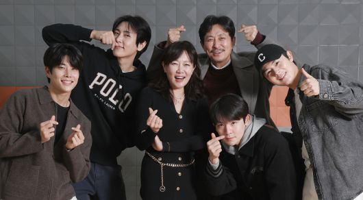 소탈한 차림에 땀 흘리며 연습에 열중하는 K팝 아이돌 가수들에게서 공연을 향한 진심이 느껴졌다. 왼쪽부터 ‘아스트로’ MJ(알렌 역), ‘SF9’ 재윤(언더우드 역), 장소영 총괄 프로듀서, MC 역을 맡은 서범석 배우, ‘ZE:A’ 김동준(에비슨 역), ‘틴탑’ 리키(세브란스 역). /장경식 기자 |