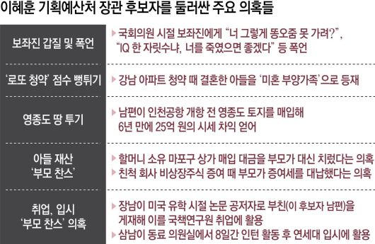 청와대는 이 후보자 임명 강행을 두고 고심하는 분위기다. 청와대 관계자는 “이 후보자에 대한 여론이 좋지 않은 것은 사실”이라면서도 “만일 임명을 철회할 경우 앞으로 야권 인사들을 등용하기 더 어려워진다는 점이 고민”이라고 했다. 다만 이 후보자에 대한 여론이 악화된 가운데 임명을 강행할 경우 부담이 크다는 지적도 나온다.