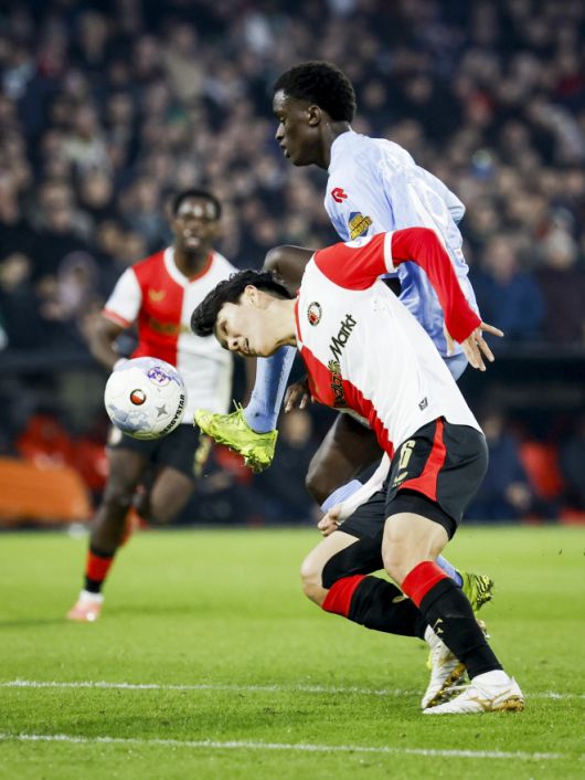 ‘유럽파’ 황인범 골맛 - 네덜란드 프로축구 에레디비시에서 뛰는 황인범(페예노르트)이 19일(한국시간) 로테르담 스타디온 페예노르트에서 열린 안방경기에서 스파르타 로테르담 선수와 볼 경합을 하고 있다. 황인범은 팀이 0-2로 끌려가던 후반 19분 추격의 발판을 마련하는 시즌 첫 골을 터트렸다. 팀은 3-4로 패했다. 로테르담 EPA 연합뉴스 |
