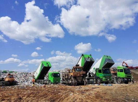 인천 서구 수도권매립지에서 작업자들이 운송차량에 담긴 쓰레기를 쏟아내고 있다. 수도권매립지관리공사 제공 |