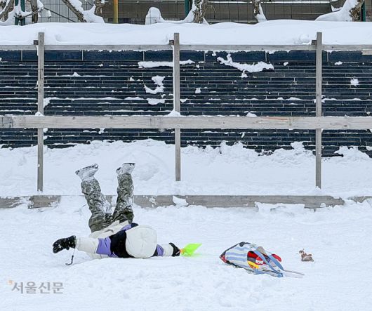 눈이 만든 놀이터 - 눈이 내린 일본 삿포로 오도리 공원에서 한 아이가 눈 위를 뒹굴고 있습니다. 넘어짐도 놀이가 되고, 모든 것이 즐거움이 되는 순간. 아무 생각 없이 몸을 맡기고 웃음을 흩뿌리며 겨울을 온전히 느끼고 있습니다. 하얀 풍경 속에서 순수한 행복이 퍼지고 있습니다. 오장환 사진부장 |