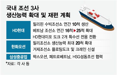 국내 조선 3사 생산능력 확대 및 재편 계획/그래픽=임종철 |