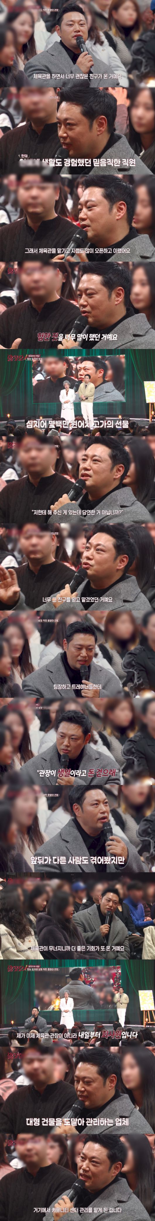 양치승은 "근데 나중에 알고 보니 팀장하고 트레이너들한테 '관장이 생일이라고 돈 걷으라더라'고 했더라"며 당시 충격을 받았던 일을 떠올렸다.