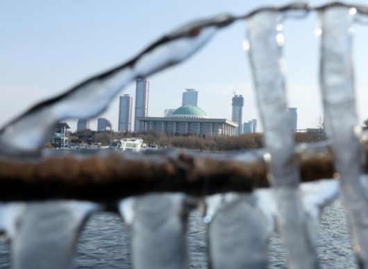20일은 전국 대부분 지역에서 아침 기온이 크게 떨어질 전망이다. 사진은 서울 영등포구 한강변에 고드름이 얼어 있는 모습./사진=뉴스1 |