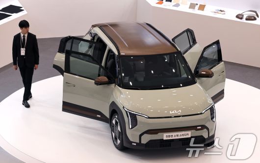 지난해 11월 25일 서울 동대문디자인플라자(DDP) 아트홀에서 열린 '2024 서울 기후테크 컨퍼런스'에서 참관객이 친환경 소재로 만든 전기차를 살펴보고 있다. 2024.11.25/뉴스1 ⓒ News1 구윤성 기자 |