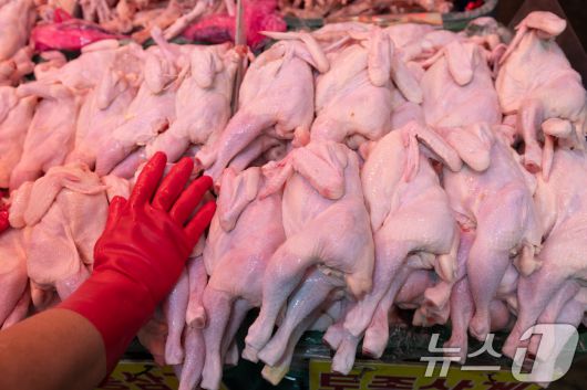 서울 시내의 한 전통시장에 닭고기가 진열돼 있다.ⓒ News1 이승배 기자 |