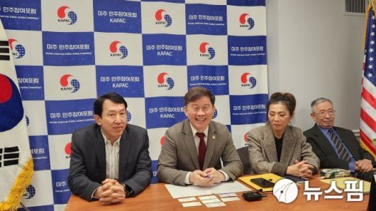 미주민주참여포럼(KAPAC) 최광철(왼쪽 두번째) 대표와 임원진. [사진=뉴스핌] |