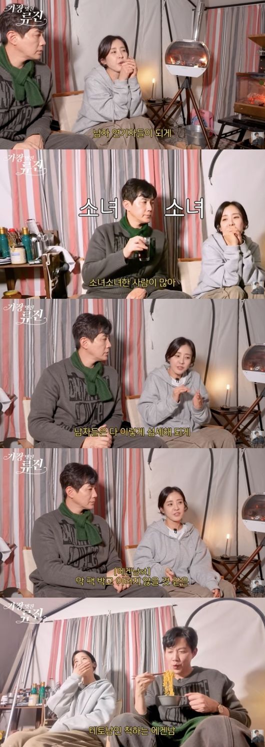 박은혜는 “남자 연기자들이 되게 소녀소녀한 사람이 많다”라고 말한 후 “여자들이 기가 되게 세다. 남자들은 다 섬세하다. 오빠도 그런 편이다. 말투가. 텐트 할 때도 팩 박고 그러지 않을 것 같다”라며 류진과 캠핑이 다소 거리가 있어 보인다고 밝혔다.
