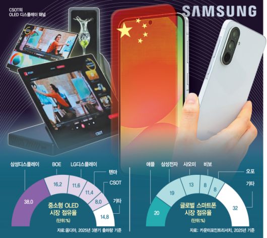삼성전자(005930)가 보급형 스마트폰 라인업에 탑재할 유기발광다이오드(OLED) 패널 공급처를 중국 차이나스타(CSOT)로 확대한다. CSOT가 고부가가치 제품인 플렉시블 OLED를 삼성에 납품하는 것은 이번이 처음이다. 글로벌 AI 열풍 속에 메모리 반도체 단가가 치솟으며 스마트폰 출고가 상승 압박이 거세지자, 삼성전자가 중국산 부품 비중을 높여 원가 방어에 나선 것으로 풀이된다.