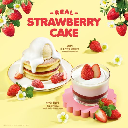 ‘생딸기 아이스크림 팬케이크’는 따뜻한 팬케이크 위에 딸기 시럽과 바닐라 아이스크림, 부드러운 플로팅 크림을 더해 풍부한 식감과 달콤하고 부드러운 맛이 조화를 이룬 메뉴다. ‘떠먹는 생딸기 초코컵케이크’는 초코 시트와 딸기잼, 딸기맛 크림, 플로팅 크림을 층층이 레이어링해 달콤함과 상큼함을 동시에 즐길 수 있는 디저트다.