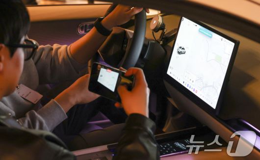 현대차그룹의 차세대 인포테인먼트 시스템 '플레오스 커넥트'를 적용한 모습. 2025.3.28/뉴스1 ⓒ News1 허경 기자 |