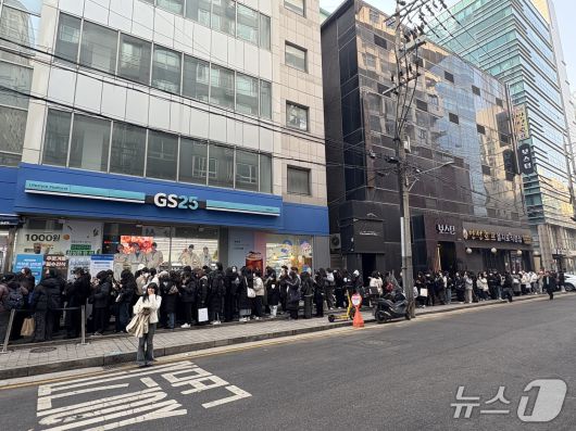 지난 16일 '플레이브 세미 팝업스토어'가 열린 서울의 한 GS25 매장 앞에 고객들이 줄을 서 대기하고 있다(독자 제공). |
