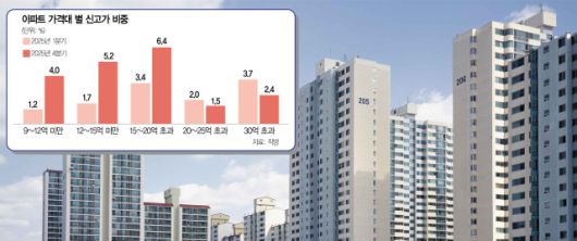 실제 지난해 가격대별 신고가 비중을 보면 주담대 한도가 2억 원밖에 나오지 않는 25억 원 초과 아파트의 신고가 비중은 10·15 대책 이후 뚜렷하게 감소한 반면 15억 원 미안 아파트는 증가한 것으로 나타났다. 지난해 서울에서 1분기에 거래된 15~20억 원 이하 구간 아파트 중 신고가 비중은 3.4%, 30억 원 초과의 경우 3.7%에 달했다. 또 15억 원 미만 아파트의 경우 신고가 비중은 1%에 그쳤다.
