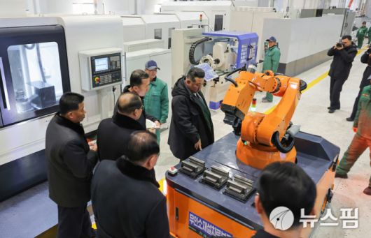 [서울=뉴스핌] 이영종 통일전문기자 = 김정은 북한 국무위원장이 19일 함남 함흥시에 있는 용성기계연합기업소를 방문해 생산라인에 설치된 로봇을 살펴보고 있다. [사진=노동신문] 2026.01.20 yjlee@newspim.com |