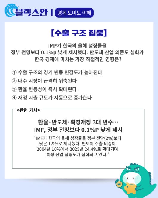▶ 기사 바로가기: 환율·반도체·확장재정 3대 변수···IMF, 정부 전망보다 0.1%P 낮게 제시