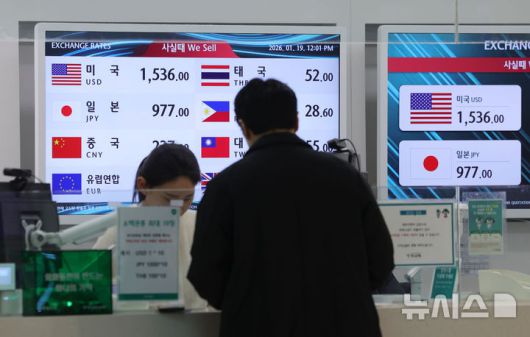 [인천공항=뉴시스] 홍효식 기자 = 고환율이 계속되는 28일 인천 중구 인천국제공항 제1여객터미널 환전소에 원·달러 환율 등이 표시되어 있다. 2026.01.19. yesphoto@newsis.com |