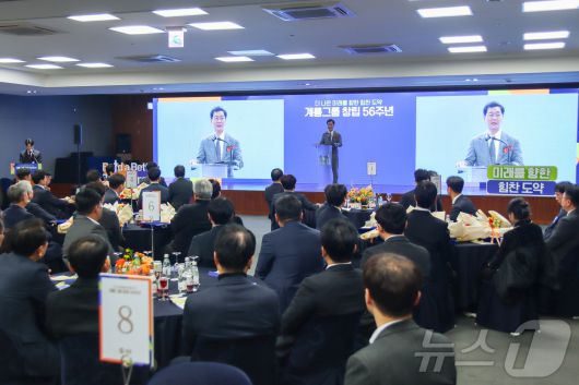 (대전=뉴스1) 이동원 기자 = 계룡그룹이 창립 56주년 기념식을 열고 2026년 병오년의 힘찬 시작을 알렸다. 계룡그룹 창립 56주년 기념식에서 이승찬 회장이 기념사를 진행하고 있다. (계룡건설 제공. 재판매 및 DB금지) 2026.1.20/뉴스1newskija@news1.krCopyright ⓒ 뉴스1. All rights reserved. 무단 전재 및 재배포, AI학습 이용 금지.