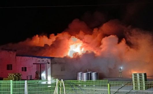 [의성=뉴시스] 김진호 기자 = 20일 오전 2시54분께 경북 의성군 금성면 청로리 한 식품제조업체에서 불이 났다.