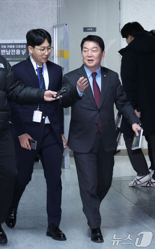 (서울=뉴스1) 신웅수 기자 = 안철수 국민의힘 의원이 20일 서울 여의도 국회 의원회관에서 열린 국민의힘 소장파 모임 '대안과 미래' 정기 모임에서 참석하고 있다. 2026.1.20/뉴스1phonalist@news1.krCopyright ⓒ 뉴스1. All rights reserved. 무단 전재 및 재배포, AI학습 이용 금지.
