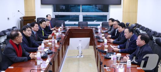 (서울=뉴스1) 신웅수 기자 = 안철수 국민의힘 의원 등이 20일 서울 여의도 국회 의원회관에서 열린 국민의힘 소장파 모임 '대안과 미래' 정기 모임에서 현안을 논의하고 있다. 2026.1.20/뉴스1