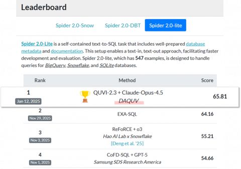 윤예지 대표는 “Lite 부문은 지난 2년간 글로벌 빅테크와 유수 연구기관이 경쟁해온 핵심 트랙으로, 다큐브의 자동화된 AI 에이전트 구조가 반복적인 성과를 가능하게 했다”며 “Text-to-SQL 솔루션 ‘쿠비(QUVI)’는 다양한 데이터베이스 환경에 즉시 적용 가능한 점이 강점”이라고 밝혔다. 이어 “남은 스노우(Snow) 트랙까지 도전해 Spider 2.0 전 부문 1위를 달성하겠다”고 말했다.