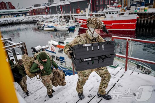 (누크 AFP=뉴스1) 강민경 기자 = 18일 그린란드 수도 누크에 파견된 덴마크 장병들이 장비를 운반하고 있다. 2026.1.18 ⓒ AFP=뉴스1 Copyright ⓒ 뉴스1. All rights reserved. 무단 전재 및 재배포, AI학습 이용 금지.