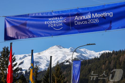 (다보스 로이터=뉴스1) 김지완 기자 = 18일(현지시간) 세계경제포럼(WEF) 연차총회(다보스포럼)가 개최될 예정인 스위스 다보스의 다보스 콩그레스 센터 앞에 다보스포럼의 홍보 현수막이 걸려 있다. 2026.01.18 ⓒ 로이터=뉴스1 Copyright ⓒ 뉴스1. All rights reserved. 무단 전재 및 재배포, AI학습 이용 금지.