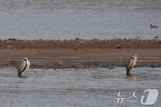 (포항=뉴스1) 최창호 기자 = 일년 가운데 가장 춥다는 대한(大寒) 인 20일 경북 포항시 남구 연일읍 형산강에서 먹잇감을 찾아 나선 여름새인 왜가리가 날개를 접은 채 앉아 있다. 2026.1.20/뉴스1