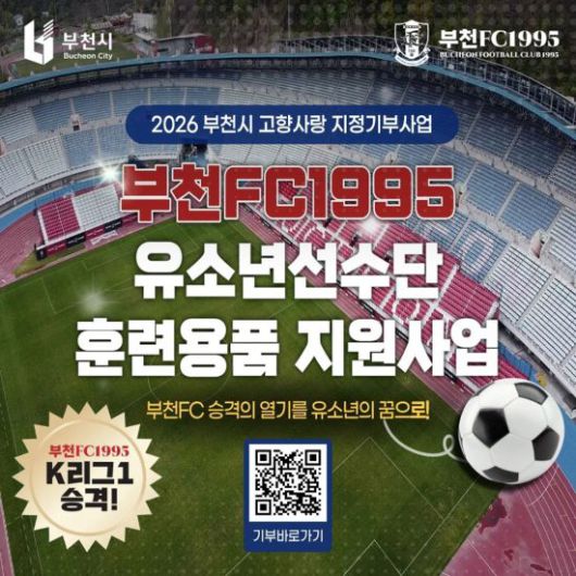 시는 부천FC1995 유소년 선수들에게 유니폼, 축구화, 축구공 등 필수 훈련용품을 지원함으로써 훈련 환경을 개선하고, 지역 스포츠 저변 확대와 부천FC 팬층 형성에도 도움이 될 것으로 보고 있다.