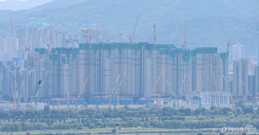 [서울=뉴시스] 권창회 기자 = 10일 서울 남산타워 전망대에서 바라본 건설현장 모습. 국토교통부와 고용노동부는 부실시공, 안전사고 및 임금체불의 주요 원인으로 지목되는 건설현장의 불법하도급을 근절하기 위해 관계기관 합동으로 오는 11일부터 9월 30일까지 50일간 단속한다고 밝혔다. 2025.08.10. kch0523@newsis.com /사진=권창회 |