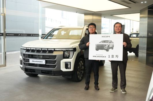 KGM은 19일 KGM 익스피리언스 센터 일산에서 KGM 권교원 사업부문장 전무를 비롯한 임직원들이 참석한 가운데 무쏘 1호 차 전달식을 진행했다.