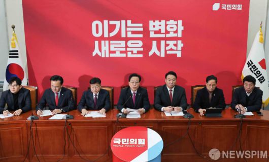 [서울=뉴스핌] 윤창빈 기자 = 송언석 국민의힘 원내대표가 20일 서울 여의도 국회에서 열린 원내대책회의에서 모두발언을 하고 있다. 2026.01.20 pangbin@newspim.com