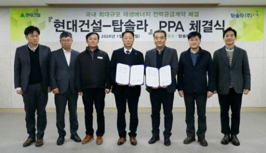 두 회사 협력은 지난해부터 본격화했다. 현대건설은 작년 6월 탑솔라와 전략적 파트너십을 체결하고 사업개발, 시공(EPC), 운영관리(O&M), 투자 등 재생에너지 밸류체인 전반에서 협력해왔다. 이번 협약은 그간 쌓아온 신뢰를 바탕으로 구체적인 전력 물량 확보까지 확대한 것이다.