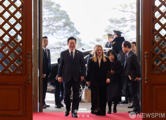 청와대 들어서는 이재명 대통령 - 조르자 멜로니 이탈리아 총리