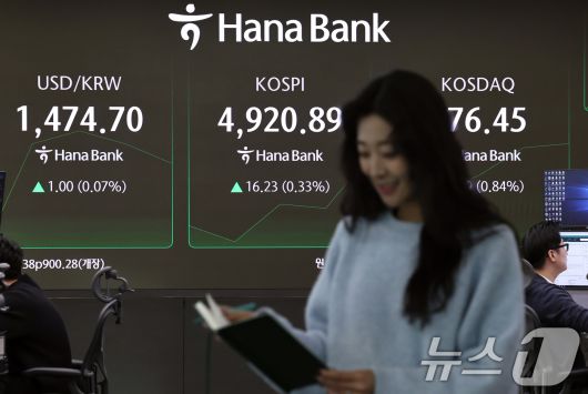 (서울=뉴스1) 구윤성 기자 = 20일 오전 서울 중구 하나은행 본점 딜링룸 전광판을 통해 나오는 코스피 지수가 하락 출발한 뒤 상승전환하고 있다. 2026.1.20/뉴스1kysplanet@news1.krCopyright ⓒ 뉴스1. All rights reserved. 무단 전재 및 재배포, AI학습 이용 금지.